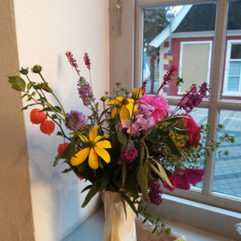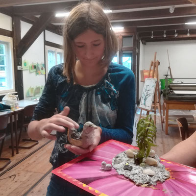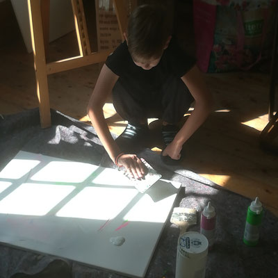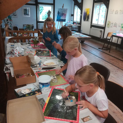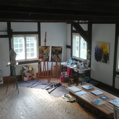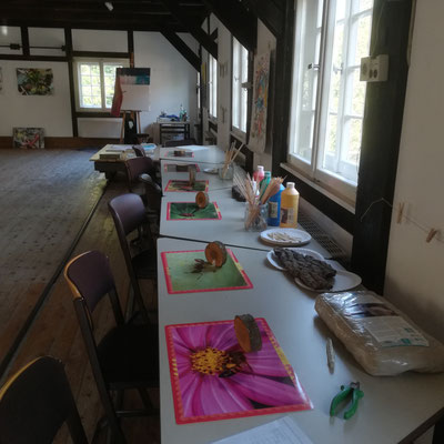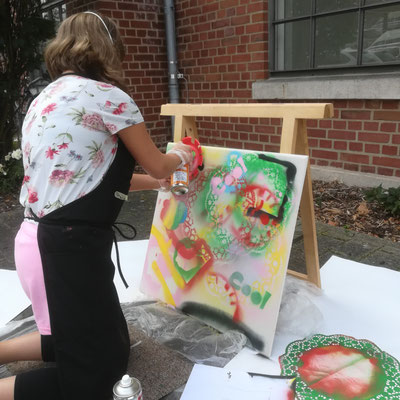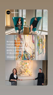 "Aus dem anfänglichen Motiv entwickelt sich etwas ganz Neues, macht sich auf den Weg und wird zu einem Gesamtwerk, in dem sowohl die Künstlerin als auch die Betrachter auf eine Erlebnisreise gehen." Auszug aus dem Artikel der Lingener T agespost v om 10.08.2016